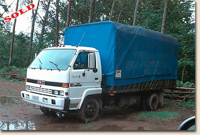 6 cyl Isuzu turbo diesel engine, 5 speed transmission, 16 ft flat body with removeable tarp, New license and inspection